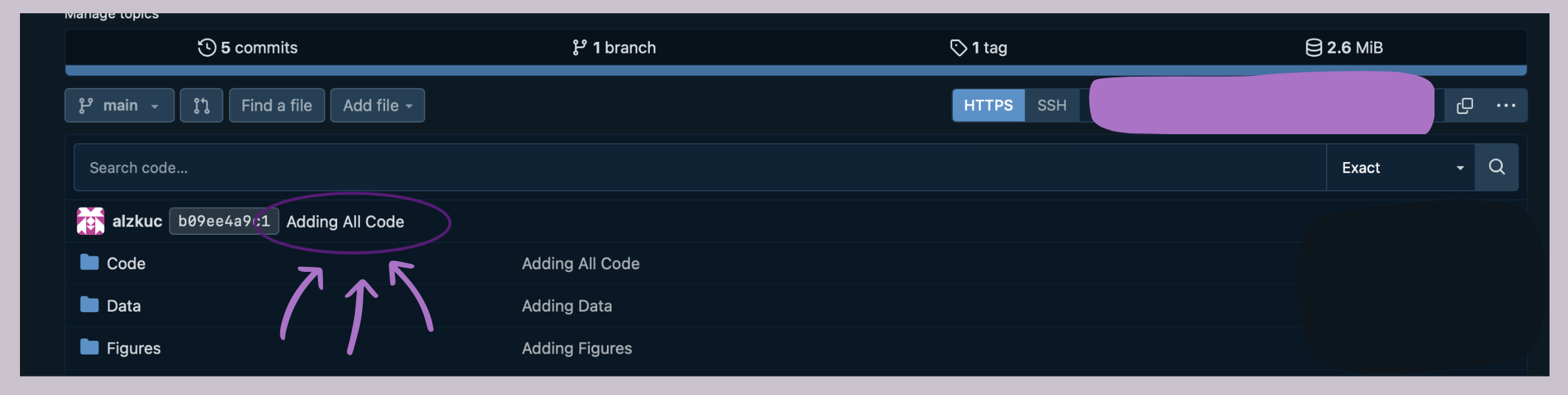 The easiest way to do this on Codeberg is to click on the last commit in your repository (Here: "Adding All Code").