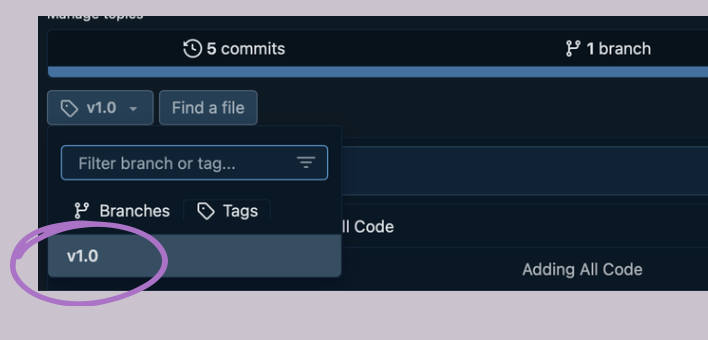 If everything went well, you should now see your version under tags on the main page of your repository!